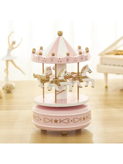 1pc Wooden Music Box With Sky City And Rotating Horse Design, Romantic Birthday Gift And Classic Eight-Tone Home Decor Birthday Gifts Graduation - Star Pink - View 1