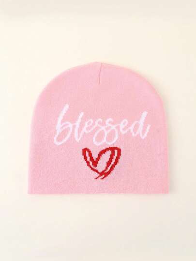 1pc Y2k Style Gothic Letter Pattern Knit Beanie, Warm & Fashionable Winter Hat Suitable For Outdoor Sports, Cycling, Travel, Skiing (Valentine's Day Gifts) - Pink - View 1