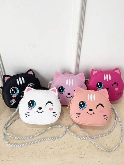 1pc Young Girl PU Leather Zipper Closure Cute Cartoon Cat Mini Crossbody Bag, Suitable For Daily Use - Cat - View 1