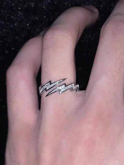 1pc Zinc Alloy Rhinestone Lightning Bolt Personalized Hiphop Men's Open Ring, Versatile Accessory For Party & Everyday Wear - Lightning - View 1