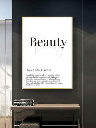 1pc 'beauty' Letter Design Frameless Canvas Oil Painting Waterproof Rectangle Shape For Living Room And Study Room Wall Decor,Wall Art,Poster Gifts Birthday Graduation - Black and White - View 1