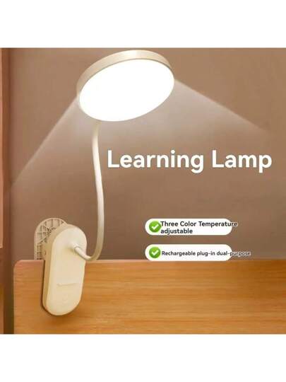 1pc's New Creative LED Standing Clip-On Bright Desk Lamp, Flexible Charging/Plug-In Dual-Use Household Desk Lamp, Touch Three Levels Of Dimming Brightness +USB Charging, Anti-Blue Light Eye Protection Reading Lamp, Special Dormitory Lamp For Students, Portable Desk Lamp For Bedroom, Living Room, Study, Office, Bedside, Etc. (Send USB Charging Cable) - Round Head Clip - View 1