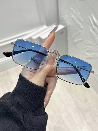 1pcpiece Of Small Square-Frame Women's Fashion Glasses, Suitable For All-Season Vacation And Beach Accessories, Outdoor Street Photography Stylish Glasses, Photography Outfit Matching Eyewear Accessory - Multicolor - View 1
