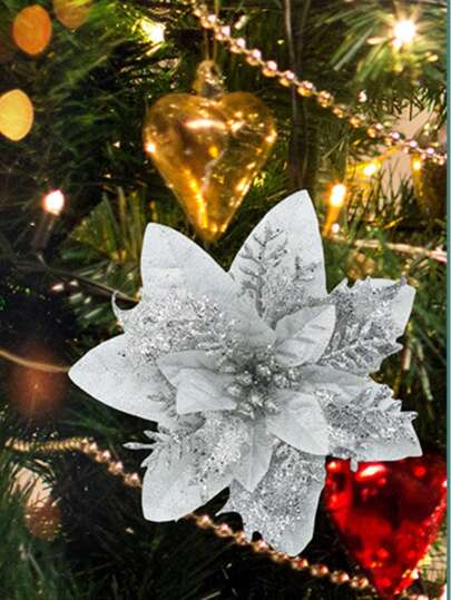 1set 5pcs Artificial Silver Christmas Flowers - Silver - View 1