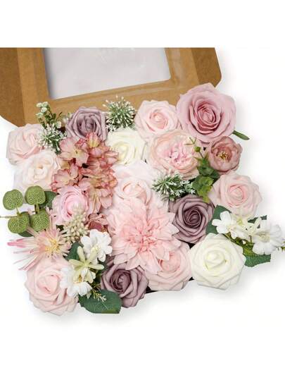 1set Artificial Rose Flower Arrangement Mixed With Silk & 30 Stems Faux Greenery Diy Wedding Arch Bridal Bouquet Party Wall Home Decor Holiday Decoration - Baby Pink - View 1