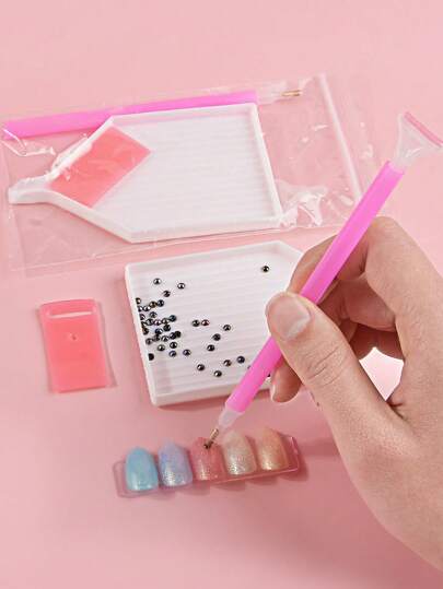 1set Nail Art Drill Point Pen & Rhinestone Tray & Glue Mud - Pink - View 1