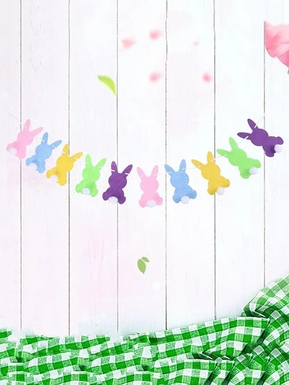 1set Non-woven Fabric Pull Flag, Rabbit Design Hanging Flag For Party - Multicolor - View 1