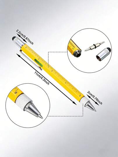 2/1 Pack High-Quality Compact 6-In-1 Multi-Function Tool Pen - Equipped With Magnetic And Flat Head Screwdrivers, Smooth-Writing Ballpoint Pen, Sensitive Stylus, Ruler, Mini Level, Ideal For Home Repairs/DIY Projects/Office/Electronics Maintenance/Outdoor Camping/Automotive Emergency, Long-Lasting, Perfect For Men And Repair Workers. - Multicolor - View 10