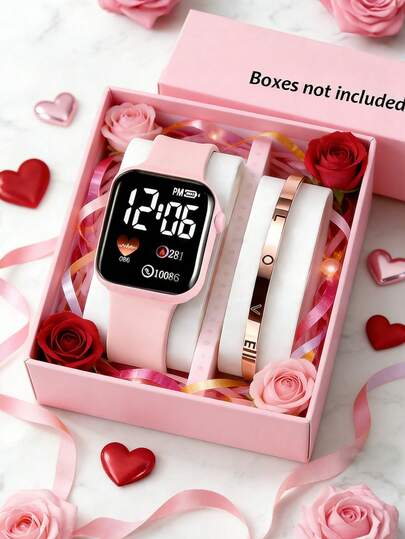 2/1pc Elegant & Cute Fashion Women's Square Digit Pink Electronic Watch With LOVE Bracelet, Suitable For Parties, Outings, Travels To Check Time, Also Ideal As Gifts For Valentine's Day, Back To School, Easter, Thanksgiving, And Various Holidays - Multicolor - View 12