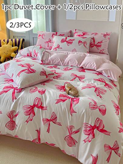 2/3pcs Digital Print Kids Bedding Set, Minimalist Modern Style Children Girls Duvet Cover Pillowcase Set, Suitable For All Seasons (1/2 Pillowcase + 1 Duvet Cover) - Pink - View 1