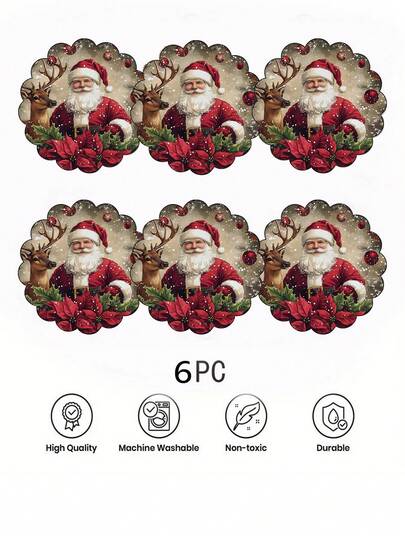 2/4/6/8 Pcs Christmas Holiday Placemats Set - Polyester Round Table Mats With Santa Claus & Reindeer Design, Woven, Non-Slip, Handwash/Washable, Suitable For Holiday Party, Outdoor Dining, Home Decor, Durable - Multicolor - View 9
