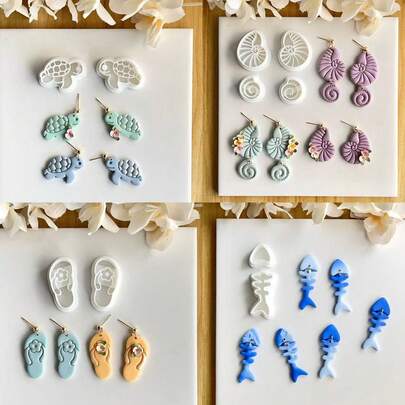 2/4pcs Ocean Animal Themed Polymer Clay Cutters, Includes Shapes Like Turtle, Seashell, Small Fish, For DIY Decorative Earrings, Brooches, Pendants, Ceramics, Summer Beach Holiday Styles, DIY Earring Pendant Craft Ceramic Art Set - White - View 15