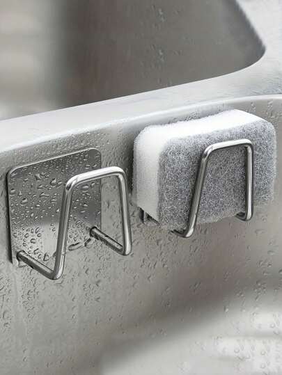 2/4pcs Stainless Steel Kitchen Sink Organizer - Adhesive, No-Drill Sponge Holder & Draining Rack | Wall-Mounted Storage Hooks For Cloths & Accessories - Multicolor - View 2