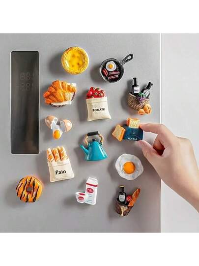 2/5/7/10pcs Creative Food Shaped Refrigerator Magnets - Realistic 3D Resin Kitchen Decor, Assorted Designs: Pizza, Donuts - Oval ABS Resin Magnets Suitable For Refrigerator, Food Themed Decorative Design, Textured Surface & Fine Craftsmanship - Multicolor - View 13