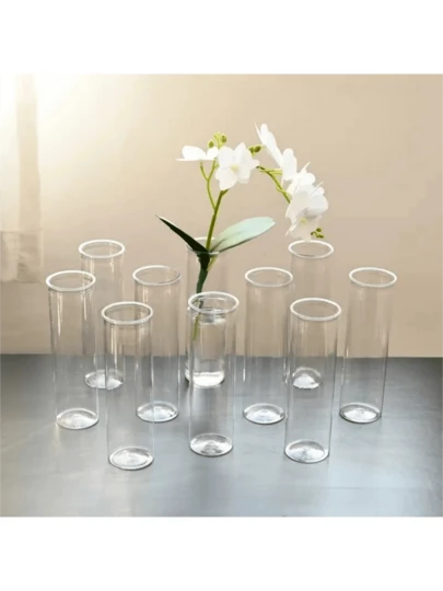 2/6/10/12pcs Cylindrical Plastic Vases, Transparent Slim Single Stem Vases, Minimalist Style Bulk Vases For Home Decor, Suitable For Wedding, Birthday, Bridal Shower, Party, Dining Table Centerpiece, Durable Material, Decorative Vases For Event Stylists And Party Organizers - White - View 9