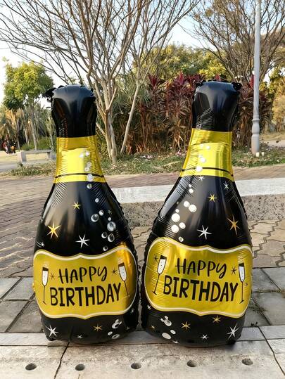 2/8pcs Happy Birthday Black Gold Foil Balloon Set, Includes Happy Birthday Bottle, Happy Birthday Round Balloons And Black Gold Star Foil Balloons, Suitable For Birthday Party Decoration, Black And Gold Birthday Supplies, Anniversary, Photo Booth Backdrop, Shower Party, Home Decor - Multicolor - View 1