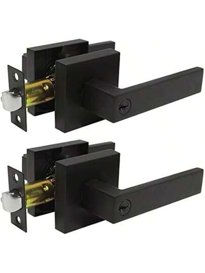 2 Pack Square Entry Door Lever Stainless Steel Exterior Flat Reversible Door Handle Security Front Door Lock Set Black - EntryKeyLock(DifferentKeys) - View 1