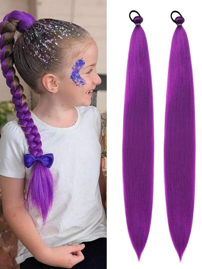 2 Pcs Braid DIY Ponytail Extensions Synthetic With Hair Tie Wrap Around Hair Braid Extensions Tail Rubber Band Hair Ring For Kids - Multicolor - View 14