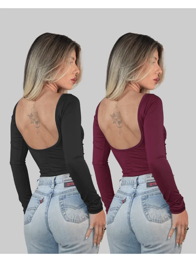 6. 2 Piece Set Women's Cropped T-Shirt, Round Neck, Long Sleeve, Backless, Suitable For Spring And Autumn AITONA
