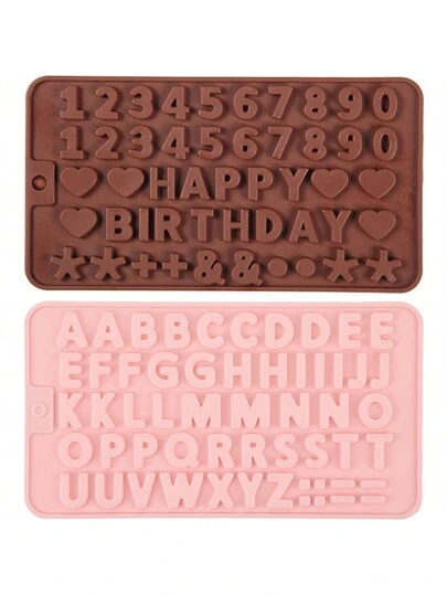 2 Pieces Alphabet Numbers Chocolate Mould Set Silicone Happy Birthday Symbols Mould Letters And Numbers Silicone Molds For Birthday Cake Decoration Baking DIY - Multicolor - View 1
