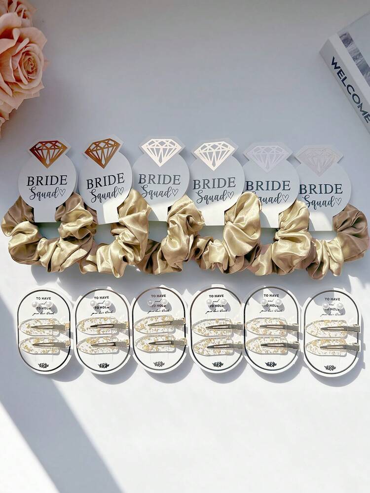 2 Sets Elegant Satin Hair Scrunchies & Faux Pearl Hair Clips Set, Gold Foil Hair Clips, Bridal Party Crystal Hair Scrunchies, Damage-Free Hair Accessories, Suitable For Weddings, Engagements, Bachelorette Parties, Hair Decor, School Supplies, Gifts, Head Accessories - Multicolor 2-piece Set - View 14