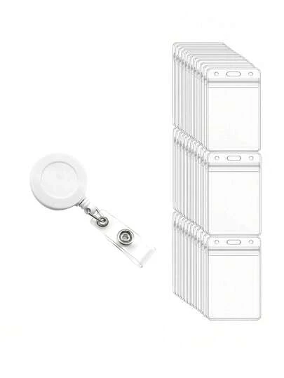 20/10/12pcs Extendable Badge Scroll Clip, Vertical ID Card Clip Extendable Badge Clip, With Clip ID Card Clip, With Business Card Clip - Easy-pull Buckle + Card Sleeve - View 1