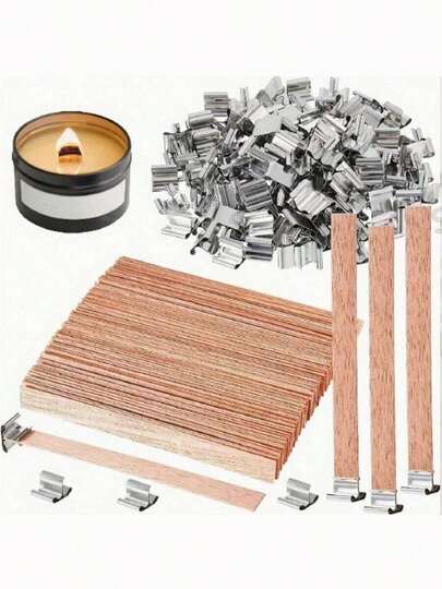 20/60/80/100/160pcs (Including Wood Core And Base) New DIY Aromatherapy Candle Cherry Wood Bar Candle Core And Base Core, Candle Making Core 5.1 X 0.5 Inch Natural Smokeless Candle Core With Iron Bracket DIY Candle Making High Quality Wooden Candle Core Burning With Cracking Sound - Multicolor - View 1