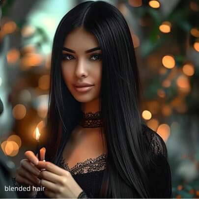 20 Inch Lace Front Human Blended Hair Wig - Straight HD Lace 180 Density Pre Plucked Bleached Knots Glueless 13x4 Frontal Wig For Women Natural Black - Natural & Black - View 6