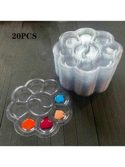20 Pcs Plastic Paint Mixing Palette Set, Transparent/White Portable Thin Palette, Suitable For Watercolor, Gouache Art Painting,School Supplies,Back To School - Multicolor - View 1