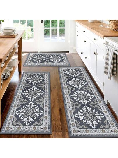 20"X32" + 20"X48" + 20"X59" Non-Slip & Washable Kitchen Rugs, Boho Style Absorbent Floor Mats, Standing Desk Pads Suitable For Farmhouse Kitchen Decor, Entryway, Laundry Room, Hallway - Grey - View 1