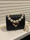 Valentine's Day Gift Mini Woven Heart Lock Bag: Crossbody/Shoulder Bag With Pearl Handle & Chain Cute Korean-Japanese Style Small Square Bag: Perfect For Gifting To Friends, Mom & Loved Ones New Arrival Versatile Mini Crossbody Bag: Woven Pattern With Pearl Beaded Handle & Chain Strap