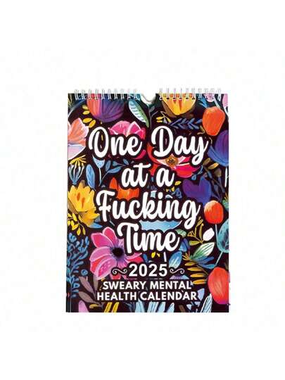 2025 New Year "One Day At A Time" Sweary Mental Health Calendar, Creative Desk Calendar For Home & Office Decor, English Funny Monthly Calendar, Desktop Countdown Planner - Purple - View 1