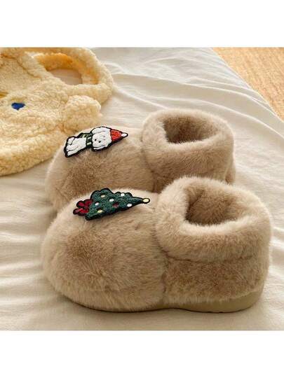 2025 Christmas Cute Christmas Puppy Plush Short Boots, Outdoor Thermal Lining Warm Anti-Slip Thick Sole Versatile Comfortable Plush Short Boots - Apricot - View 4