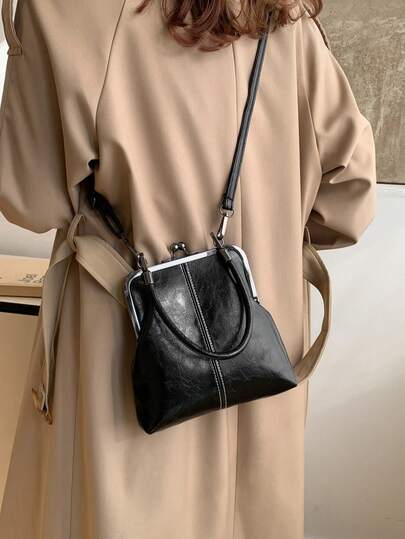 2025 New Fashion Retro PU Material Handbag, Detachable Women's Shoulder Bag With Button Closure Wallet - Black - View 1