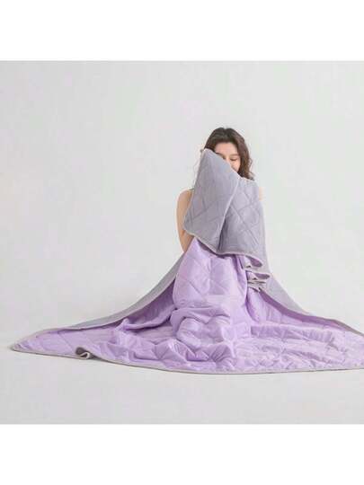 2025 New Ice Cream Printed Lightweight Quilt, Solid Colors Breathable Air Conditioning Blanket, Machine Washable - Purple - View 1