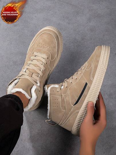 2025 New Winter Men's Sports Shoes, Men's Casual Shoes, Fashionable Street Men's Shoes, Lightweight, Personalized, Stylish High-Top Shoes, White Shoes, Sports Shoes - Khaki - View 1