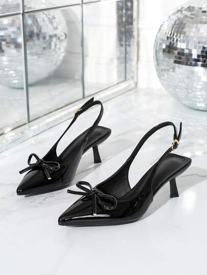 2025 Spring & Summer New Solid Color Pointed Toe Bowknot Fashionable High Heels, Sexy Office Lady High Heels, European And American Style - Black - View 1