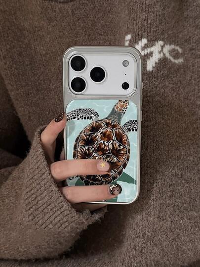 2026 New Electroplated Resin Silver Edged Korean Unique Minimalist Refreshing Sea Turtle Pattern Elegant Phone Case Suitable Compatible With Apple 17/16/15/14/13/12/11 - Multicolor - View 1