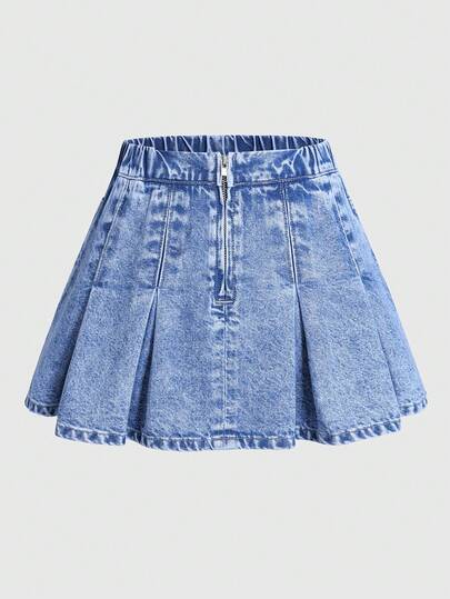 2026 Spring/Summer New Arrival Tween Girls' Vintage Pleated Denim Shorts, High Waist Loose Fit A-Line Design, Soft And Comfortable Fabric, Suitable For Street Fashion, Daily Wear, School, Commute, Party, Home, Vacation, 2026 Summer New Collection - Medium Wash - View 1