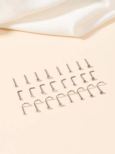 20G Titanium Alloy Nose Rings Nose Studs,G23 L Shape Nose Studs Nose Piercing Jewelry For Women Men, 0.8mm Nose Screw Piercing Silver,Nostril Piercing Jewelry 1.5mm 2mm 2.5mm 3mm CZ - Silver - View 16