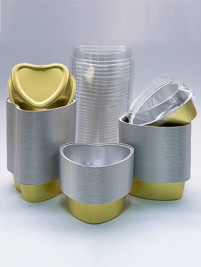 20pcs/50pcs Heart-Shaped Aluminum Foil Cake Cups With Lids,Heat Resistant Baking Cups With Lids,Heart Shaped Pudding Cupcake Cups, Perfect For Valentine'S Day ,Wedding,Mother'S Day,Birthday,And Christmas! - Gold - View 5