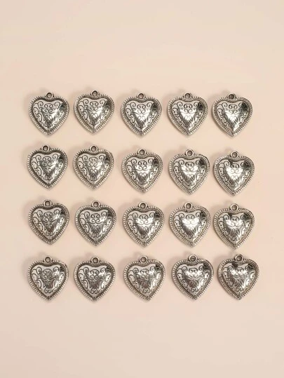 20pcs Engraved Heart DIY Pendant - Silver - View 1