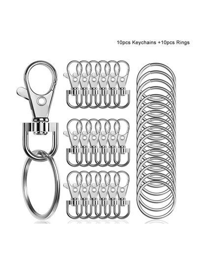 20pcs  Lobster Clasp Keychain With Swivel, 10pcs Keyring, 10pcs Keychain, Diy Jewelry Crafts Valentine'S Day Gift For Men & Women - Silver - View 1