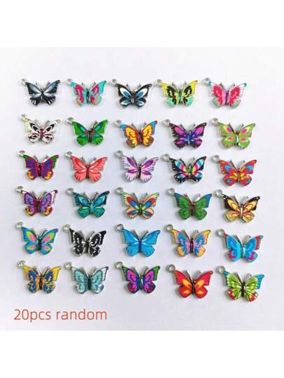 20pcs Random Color Alloy Enamel Charm, Butterfly Charm, Mixed Colors For Jewelry Making And Craft Supplies - Multicolor - View 1