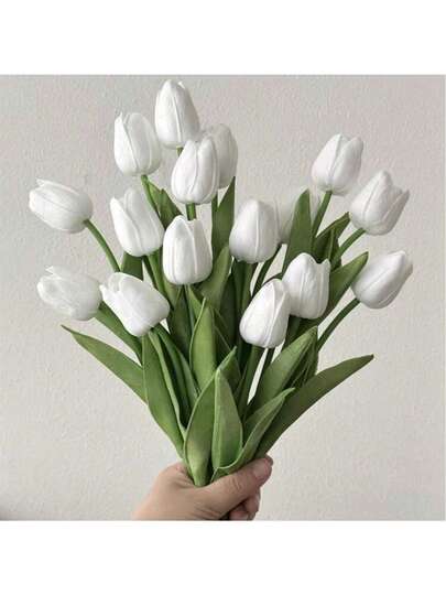 20pcs Romantic Premium Artificial Flowers Centerpieces,Plastic Flowers Real Touch Tulips Silk Bouquet, Artificial Flowers For Wedding Room Home Hotel Party Event New Years Gifts Handheld Flower Arrangement For Valentine's Day Wedding/Home/Bedroom/Living Room/Table Decoration/Bride's Bouquet/Outdoor Garden - White - View 1