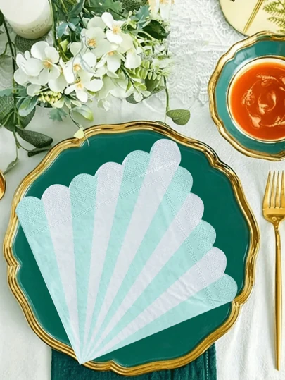 20pcs Ruffled Double-Layer Paper Napkins, Decorative Paper Napkins For Holidays, Birthdays, Weddings, Parties, Suitable For Daily And Restaurant Use - Green - View 1