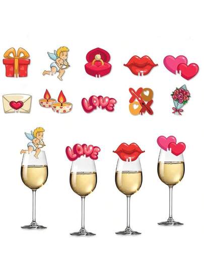 20pcs Valentine's Day Wine Glass Card Decorations; Cross-Border Valentine's Day Party Wine Glass Decoration Card Paper Photo Booth Props - Multicolor - View 1