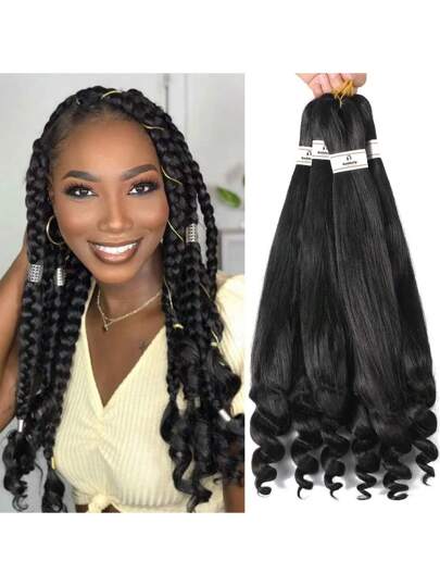 12/22 Inch 3packs Braiding Hair Pre Stretched French Curly Braiding Hair Crochet Braids Easy Braiding Crochet Hair Hot Water Setting Professional Soft Yaki Straight Hair For Braiding For Halloween - Black - View 1