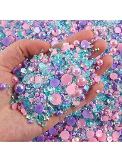 2368pcs 3-10mm Mixed Pearl Resin Rhinestone Flat Back Pearl Embellishments DIY Craft Supplies For Phone Case, Mirror, Cup, Crafts, Shoes - Pink Lake Blue - View 1