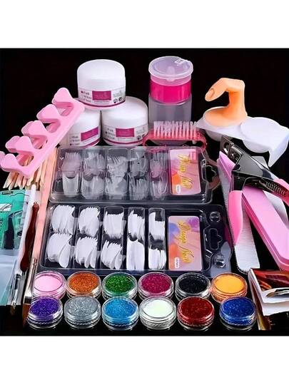 24 In 1 Acrylic Nail Kit For Beginners 12 Color Glitter Acrylic Powder White Clear Pink Acrylic Powder Nails Extension Professional Nails Kit Acrylic Set Manicure Tools Acrylic Supplies Gift For Women - Multicolor - View 1